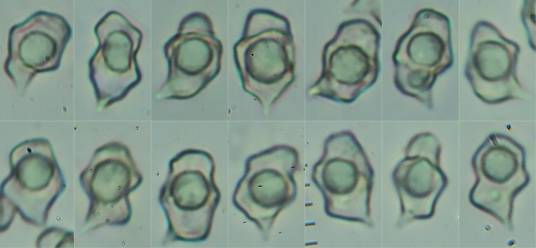 Sporen: heterodiametrisch 10,6-11,3-12,09 x 6,8-7,9-9,1 µm Q: 1,25-1,75 Qm: 1,45