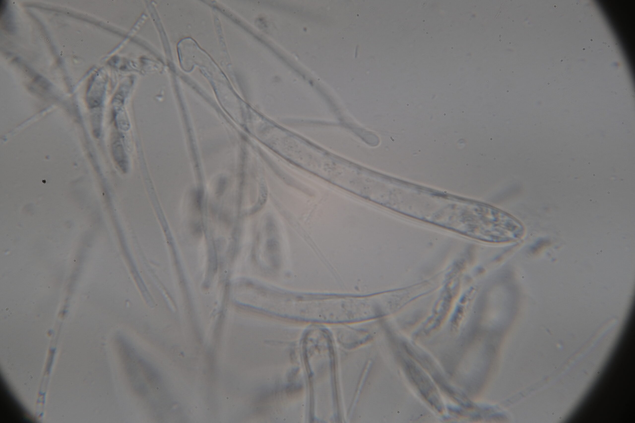 Paraphysen: dünn schmal mit öligem Inhalt, gebogen und teilweise in der Hälfte gegabelt.